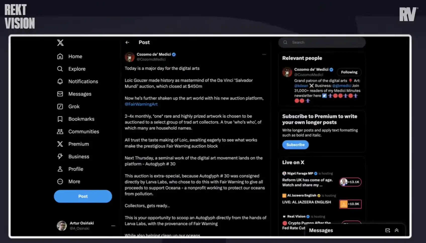 ![]() 最近一周加密市场表现强劲,美联储政策预期降息开启全球宽松周期。较去年同时期相比,比特币涨幅 13%-14%,山寨币涨幅超过 50%。Solana 市场热情有所减弱,更多关注转向新 L1 项目如 Sui 等,投资者情绪逐渐回归理性。未来市场或将围绕选举、技术面与宏观背景波动,ETH 被认为存在低估机会以及 NFT 市场的复苏潜力。Raoul Pal 看好 X Copy 的 NFT 和数字艺术的未来,讨论还触及 NFT 与 meme 币的结合及其增强社区的潜力,尤其是 Pepe 和 Doge 等 meme 项目的多周期价值,同时强调怀旧和互联网文化在 NFT 市场中的重要性。 嘉宾介绍: Mando : Canary Labs 的联合创始人,Mando Minutes 创作者。 OSF : rektguy 和 Canary Labs 的联合创始人。 Raoul Pal : Real Vision 的首席执行官兼联合创始人。 TL;DR: 加密市场的强势反弹:最近一周,加密货币市场表现良好,宏观经济动态特别是美联储政策的变化引发了市场反弹,尤其是技术性抛售已成为过去。 美联储降息影响:随着全球宽松周期的启动,市场进入新的货币政策时代,比特币和许多山寨币显著上涨。 Solana 市场热情衰退:围绕 Solana 与以太坊的竞争现状,指出 Solana 热潮减退、用户关注转移至其他 L1 如 Sui 等。 meme 市场的兴衰:meme 币炒作的消退类似于 NFT 市场的衰退。与此同时,尽管 ETH 当前情绪低迷,未来在宏观经济宽松周期下,ETH 与 NFT 市场仍有巨大潜力。 新 L1 项目备受关注:Sui 在近期表现强劲,主要因与 Circle 的 USDC 集成及市场关注度的增加。Avalanche 的游戏生态系统也展现出潜力,尤其是「Off the Grid」等 Web3 游戏项目,可能推动其强劲回归。 快问快答:提到市场目前主要是场外资金回流,而非大规模新投资者进入。尽管有关于收益率曲线和降息的担忧,但市场整体情绪仍未看到大资金涌入,预计只有比特币再创新高时才会有更多机构参与。 加密市场的强势反弹Mando: 最近一周的加密货币市场表现非常好,大家对市场感觉如何? Raoul Pal: 我们一直在强调,九月正是积累的好时机。这周宏观经济方面的消息很重要,尤其是美联储的动态似乎引发了市场的反应。这周有很多大事件,但现在似乎大家都有了更清晰的认识。人们曾希望能在获得更多明确指引后迎来反弹,显然很多技术性的抛售已经成为过去。 FTX 将在第四季度回归,看来这是一场精心安排的美联储政策,接下来我们可能会迎来两年的降息周期。尽管除了中国外我们可能不会立即转向量化宽松,但全球宽松周期似乎已经再次启动。 OSF: 几周前,我参加的最后两场节目中,我们提到,如果你打算进入市场,那正是最佳时机。当时比特币勉强维持在 54,000 到 55,000 美元之间,我们经历了一个非常波动和流动性不足的夏天。在本周的降息前,我们讨论了这个问题,考虑到选举和基准利率在 25 到 50 个基点之间,实际上美联储有很大的降息空间。 因此,我认为我们几周前提到,无论你看涨与否,如果你想在市场上冒险,那时候就是最佳时机。因为比特币自那时以来上涨了大约 13% 到 14%,而许多山寨币和热门币种也上涨了 50% 以上。现在我们要弄清楚这种上涨能否持续,与以往的假突破相比,我们正处于一个宽松周期的开始,而美联储已经有三年多没有这样做了,甚至可能更久。我们必须理解,这是一种范式转变,我们即将进入一个全新的货币政策和全球流动性的时代。 美联储降息影响Raoul Pal: 这张图表非常漂亮,是 GMI 全球周报提供的,展示了主要全球经济体的私人和公共部门流动性。这是一个完美的指标,领先 10 周。M2 的表现也相似。我们还看到比特币的季节性表现一向强劲。 让我再分享另一个图表。比特币正在重复去年的走势,几乎是完美的。我们有宏观背景,联储将继续降息,其他中央银行也会参与,季节性和全球流动性周期都到位。 我不知道还剩下什么,似乎现在就是最佳时机,连图表模式也表明,通常在顶部和底部的范围内会有三次触碰,这通常是有效的,所以所有因素都已具备。 Mando: 我在这个节目上公开表示,过去几周我一直在进行定投(DCA)。但我认为在选举期间我们可能会经历一些波动,如果特朗普获胜,我认为我们可能会在年底看到一次激烈的反弹,因为其他因素也在起作用,而基本面强劲,黄金每天都在创下历史新高。 这表明,黄金和比特币之间的背离提供了一个绝佳的买入比特币的机会。过去一段时间它们之间的负相关主要是由于技术性抛售,但现在四季度似乎会出现技术性买入。这周我们已经看到迈克尔·塞勒(Michael Saylor)增加了 700 百万的可转换债券供应量,提升到 10 亿美元,这意味着他手中还有大约 15 亿美元的比特币待购,而他会继续买入。 本周,黑石公司表示他们将告诉投资者,比特币是当前美国债务危机的最佳对冲工具,这进一步表明机构需求正在增加。此外,卡塔尔和不丹等国本周也披露了大量比特币持有量,这显示出越来越多的主权国家正在进入市场。同时,FTX 也有大约 160 亿美元的资金回归市场。我认为技术面和基本面都已经对接。不过,在选举前我们可能还会有一些波动,但这个窗口期真的很短,你会在上涨过程中买入,而不是等待低点。 Raoul Pal: 这些波动可能发生在趋势顶部附近,在比特币 70,000 美元的水平上波动,可能会在 70,000 到 75,000 美元之间徘徊。不过无论选举结果如何,之后市场都会上涨,这在过去也得到了验证。特朗普执政时,市场表现良好,因为他非常支持刺激政策,对加